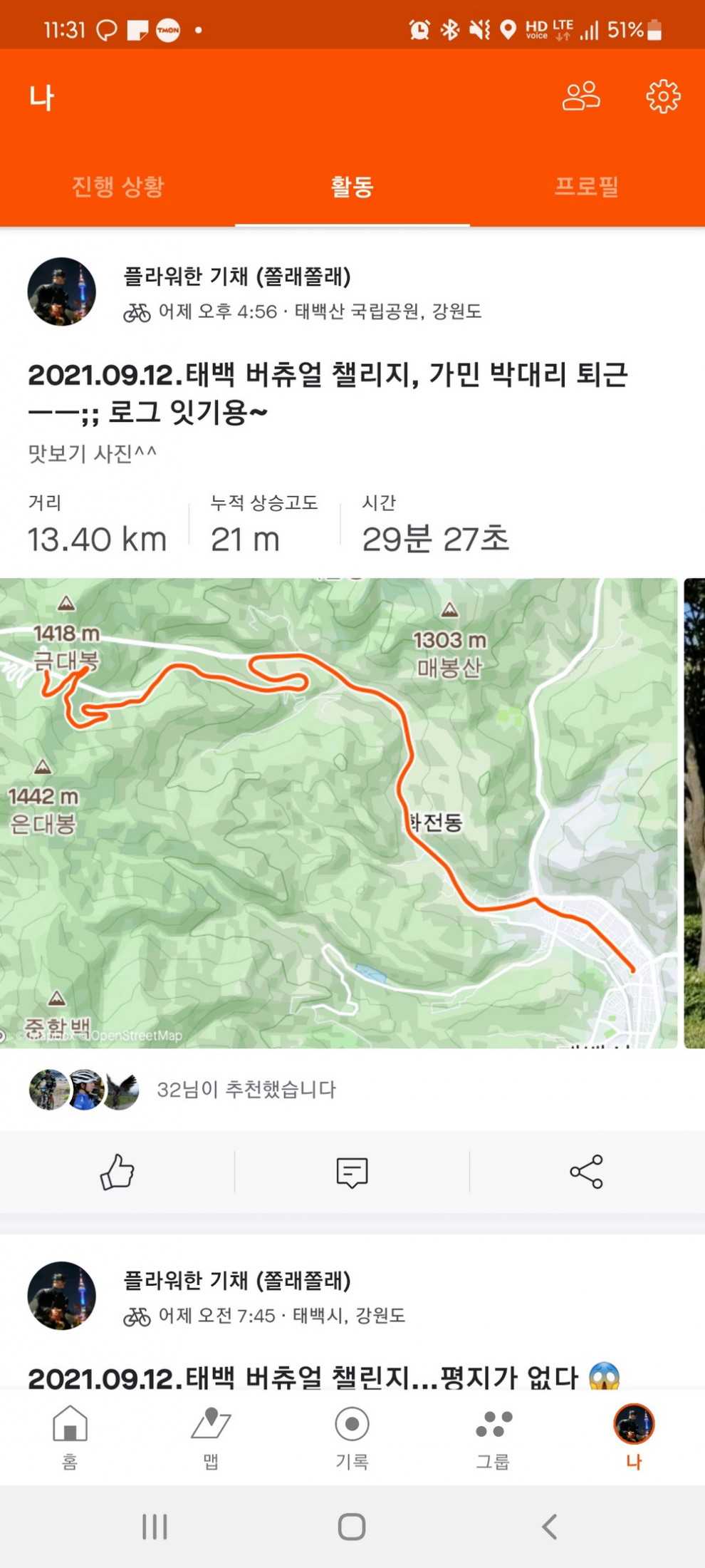 태백버추얼챌린지 | 제목 : 67 조회수 : 3,870 마스터 챌린지 1,2,3코스 완주 입니다. 중간에 가민 전원이 나가서 폰으로 스트라바 켜서 로그 두개 올립니다 등록된 댓글이 없습니다.