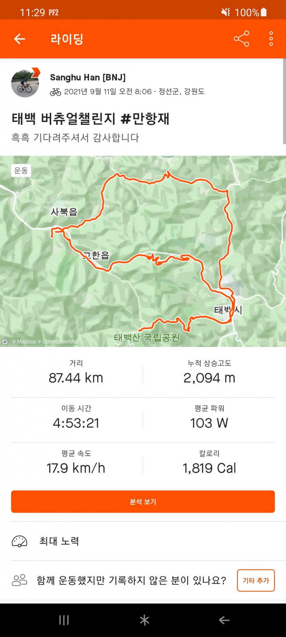 태백버추얼챌린지 | 제목 : 470 조회수 : 3,778 스트라바 기록 https://www.strava.com/activities/5940098038 블로그 후기 https://blog.naver.com/rhyshan/222507277101 등록된 댓글이 없습니다.