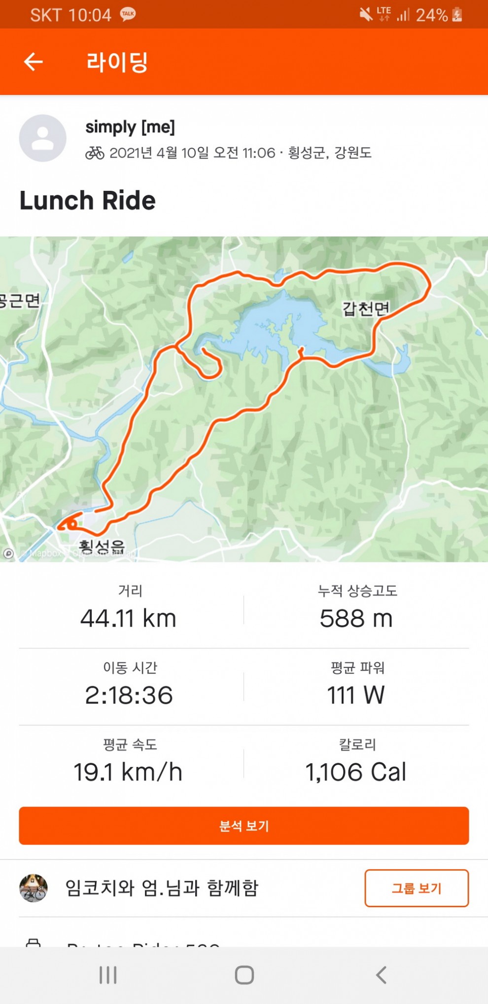 횡성 1코스와 4코스