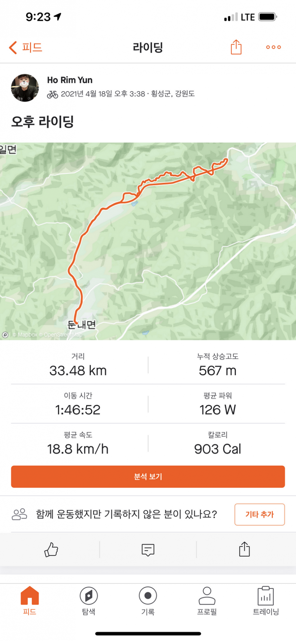 횡성 버추얼 챌린지 2코스 완주 했습니다.