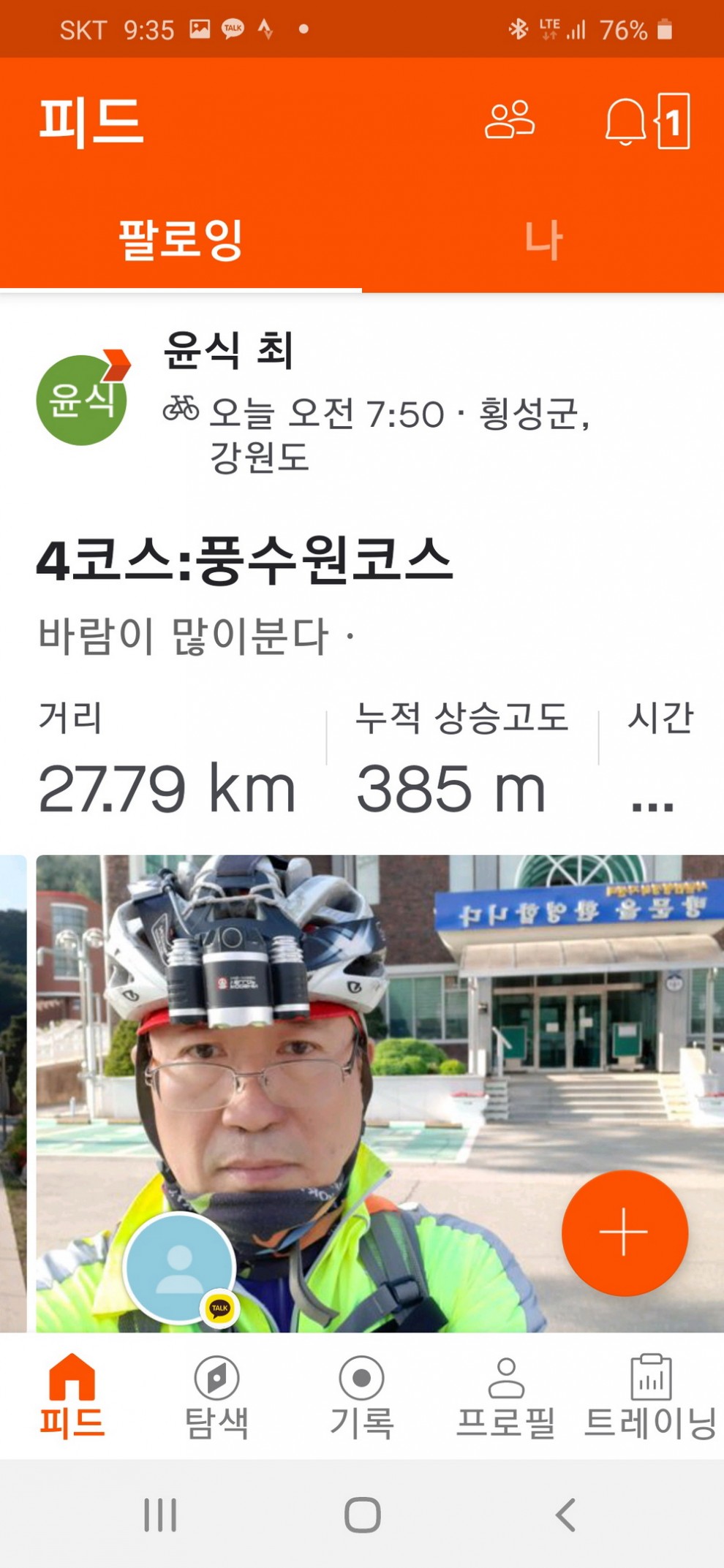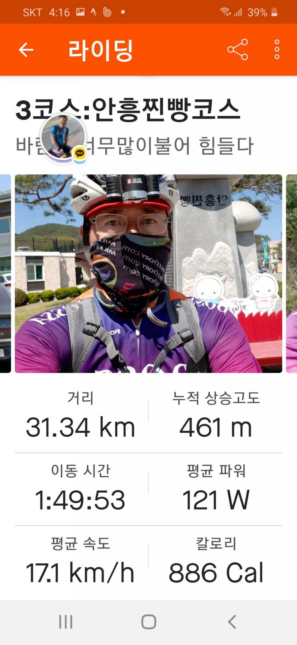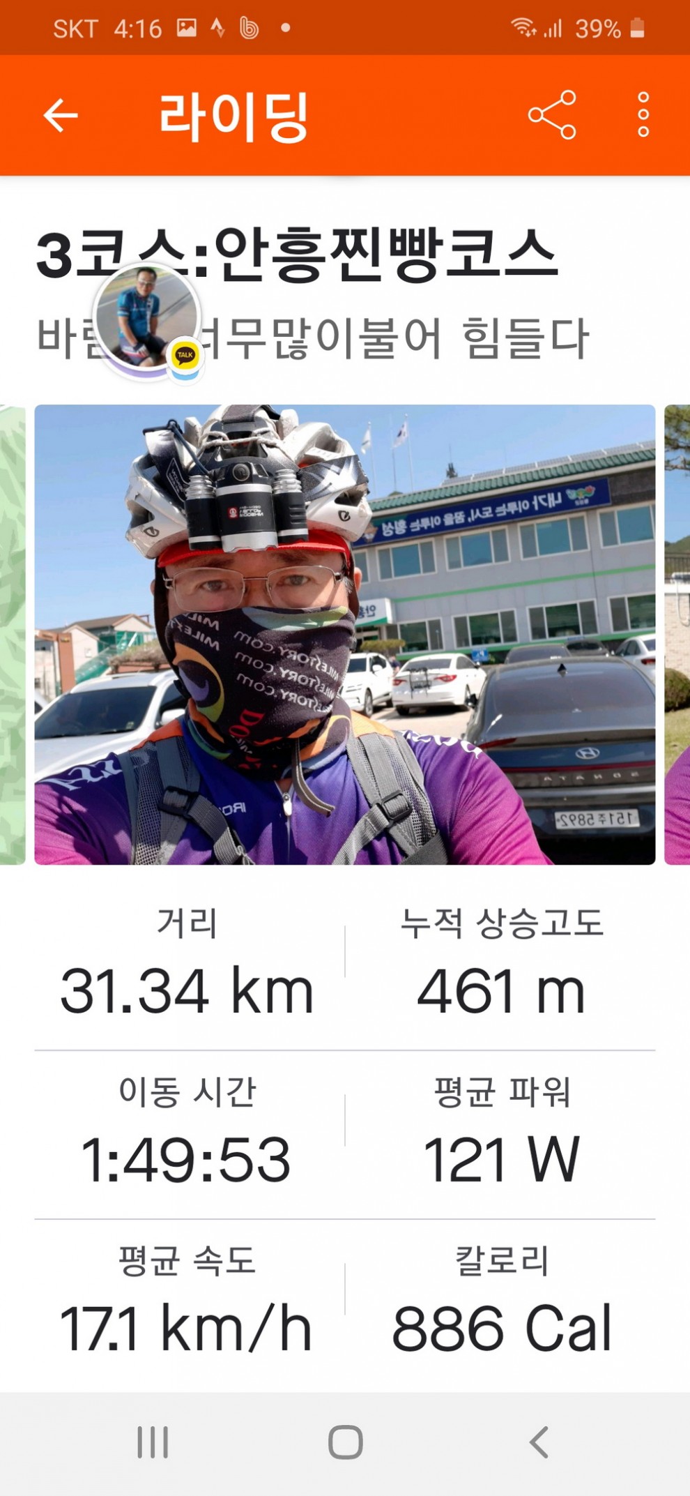 4월25일오전7시50분에 4코스(풍수원성당)을 시작으로 1코스(횡성댐)-3코스(안흥찐빵)-2코스(태기산)을 끝으로 밤8시20분에 4코스 모두끝냈습니다ㆍ특히 마지막코스 태기산탐방로 입구서부터는 운동화로 갈아신고 자전거랑 오르는 도중 핸드폰 밧데리가 소진되어 바람의동산을 인증삿을 끝으로 태기산정상으로 올랐으나 포스코7번 풍력발전기앞 바랑개비 동산앞에서 날이어두어저 오후7시10분에 하산을 하였습니다ㆍ