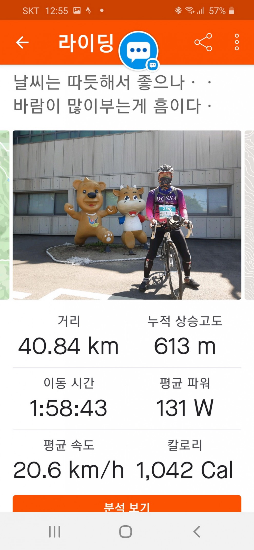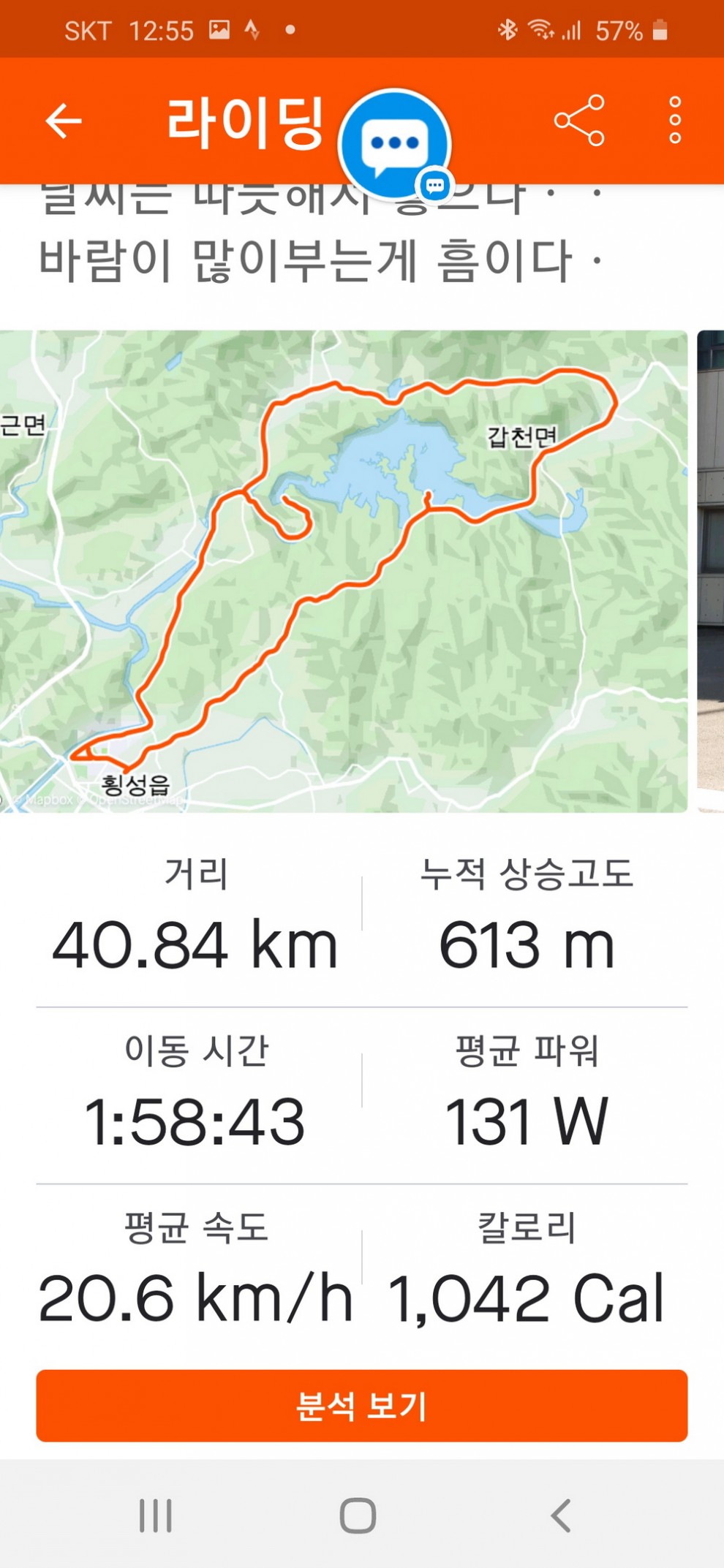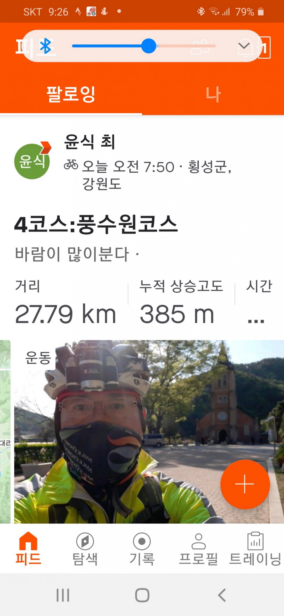 4월25일오전7시50분에 4코스(풍수원성당)을 시작으로 1코스(횡성댐)-3코스(안흥찐빵)-2코스(태기산)을 끝으로 밤8시20분에 4코스 모두끝냈습니다ㆍ특히 마지막코스 태기산탐방로 입구서부터는 운동화로 갈아신고 자전거랑 오르는 도중 핸드폰 밧데리가 소진되어 바람의동산을 인증삿을 끝으로 태기산정상으로 올랐으나 포스코7번 풍력발전기앞 바랑개비 동산앞에서 날이어두어저 오후7시10분에 하산을 하였습니다ㆍ