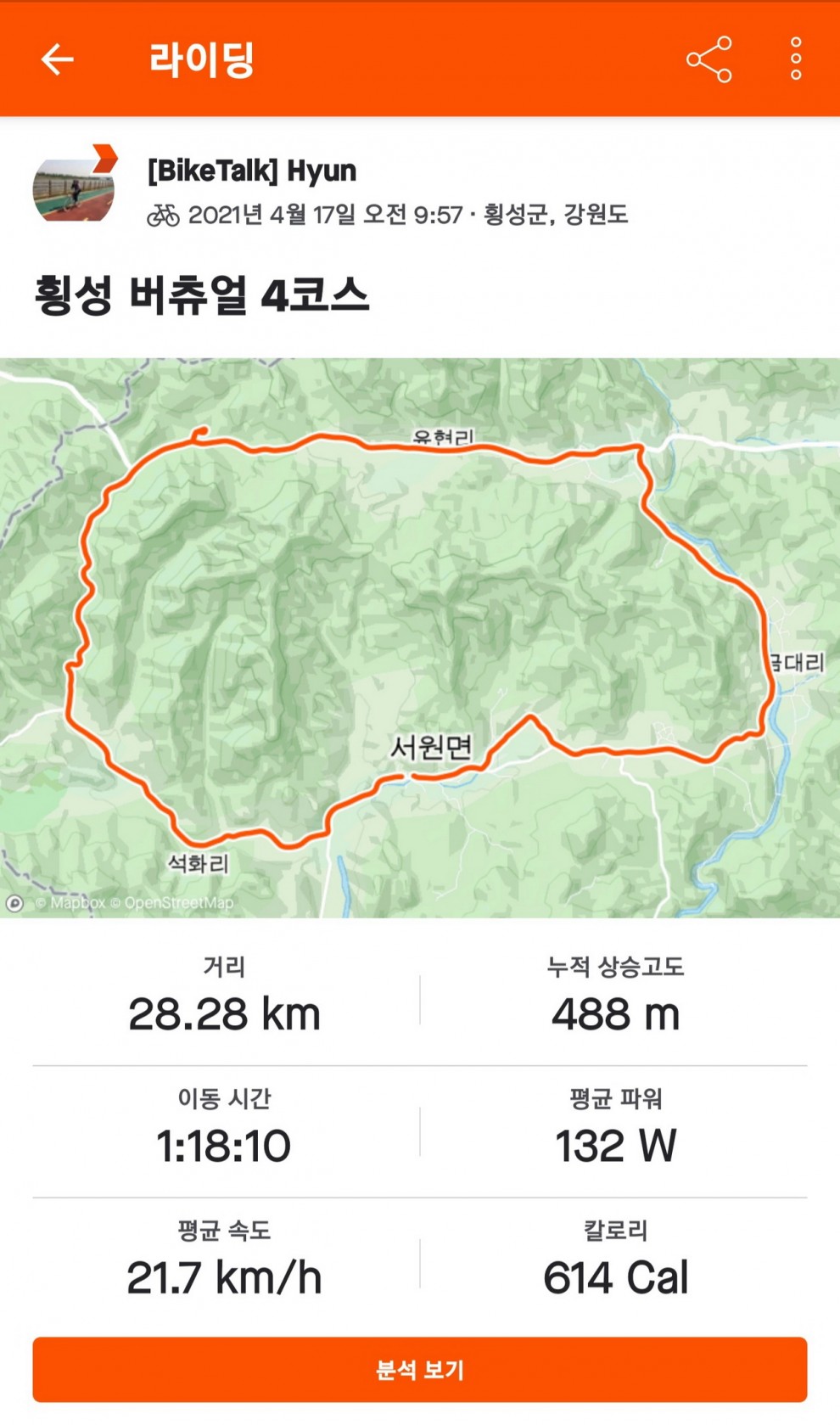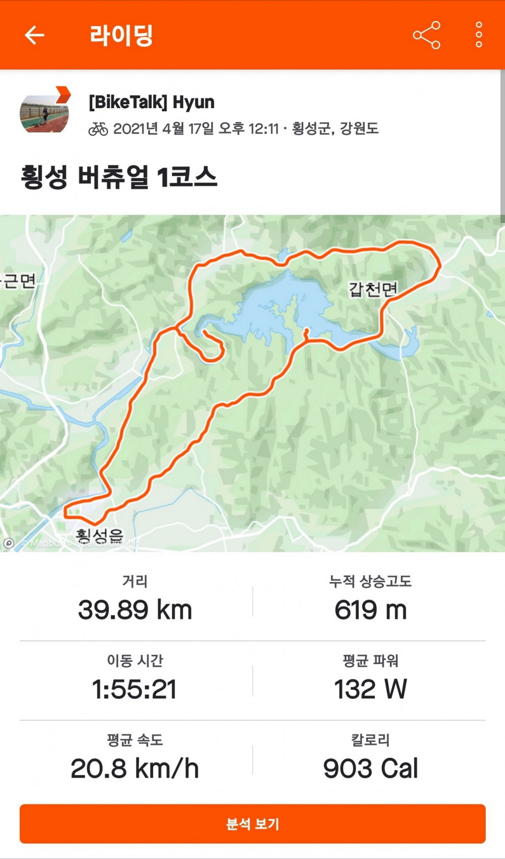 횡성 버츄얼 챌린지 1,4 코스 인증합니다