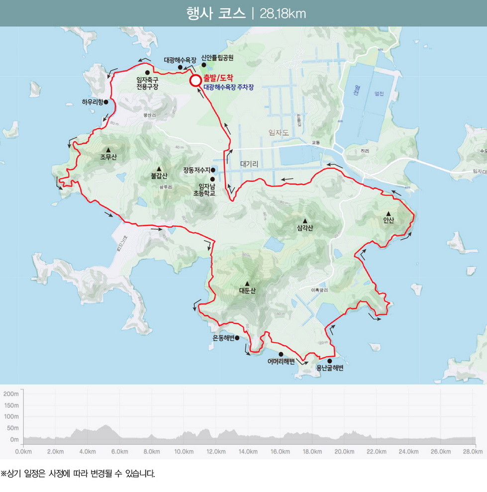 대광해수욕장, 튜울립축제, 해변 승마체험 등이 유명한곳으로 이번 신안 임자도 산악자전거대회는 대광해수욕장에서 출발하여 멋진 임자도 해안임도(약28km)를