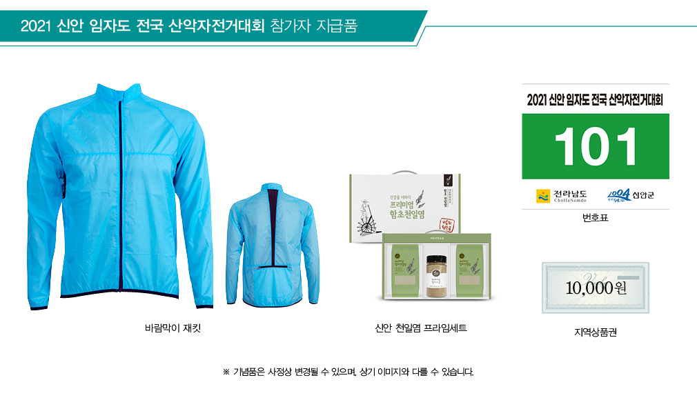 *신안군과 참가자 모두에게 지급하는 추가 지급품 협의 중 입니다.(지역 특산품(소금)) 결정되는 대로 공지해 드리겠습니다.