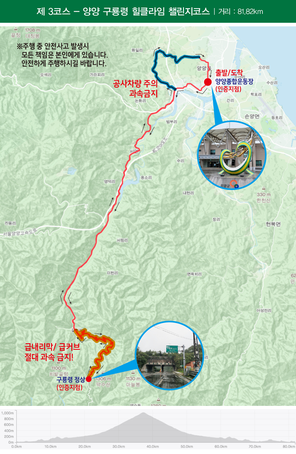 종합운동장출발->조침령->구룡령 상행->구룡령 하행->종합 운동장 도착