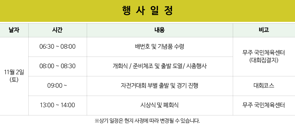 - 본 대회는 (사)대한자전거연맹 규정 적용한다.