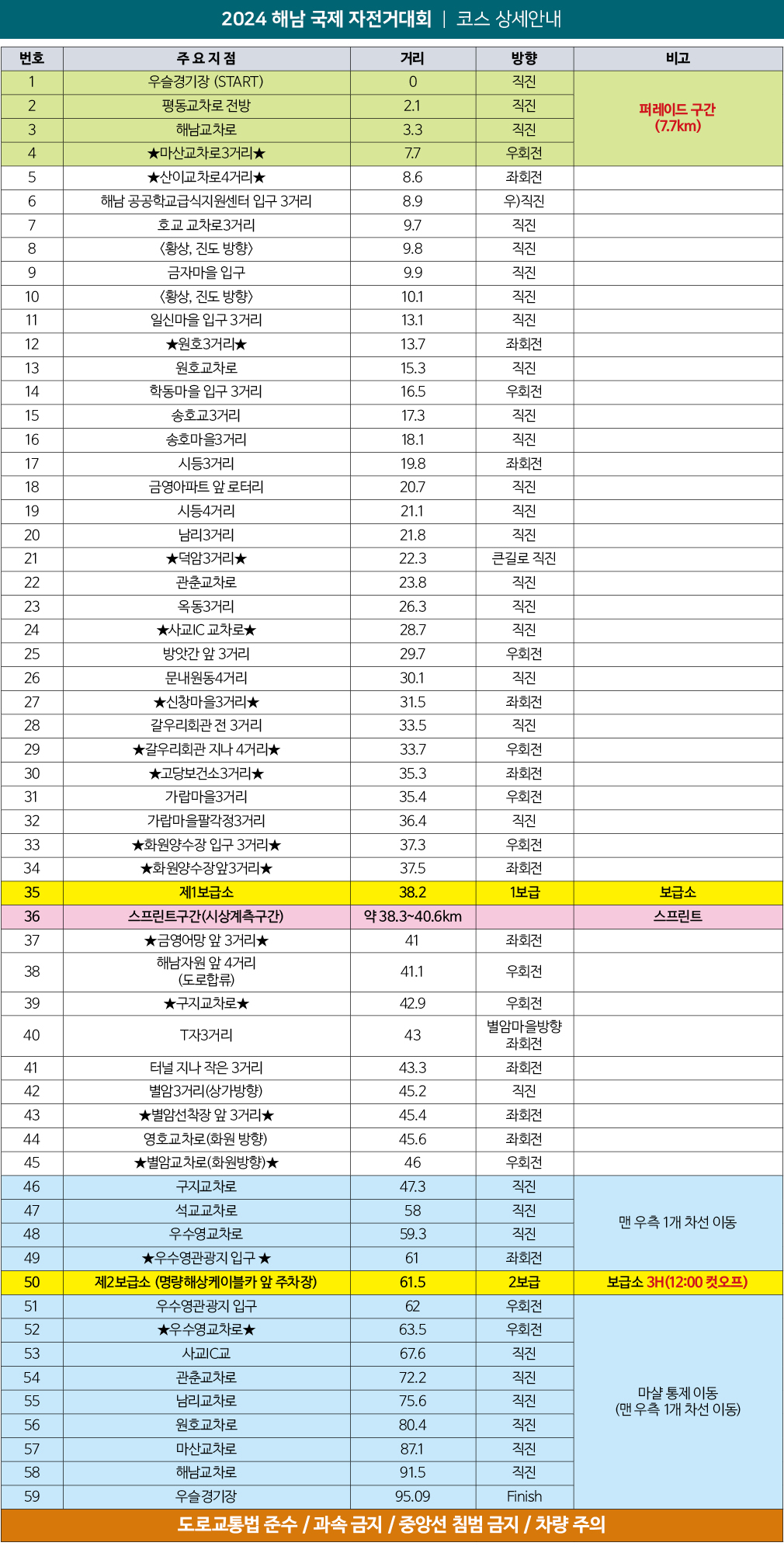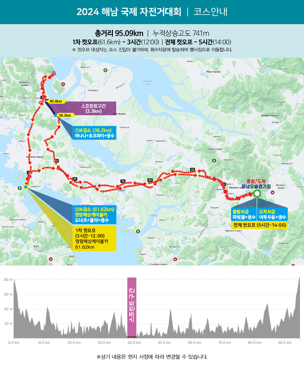 - 1차 컷오프 : 3시간 (12:00) - 61.62km 명랑해상케이블카