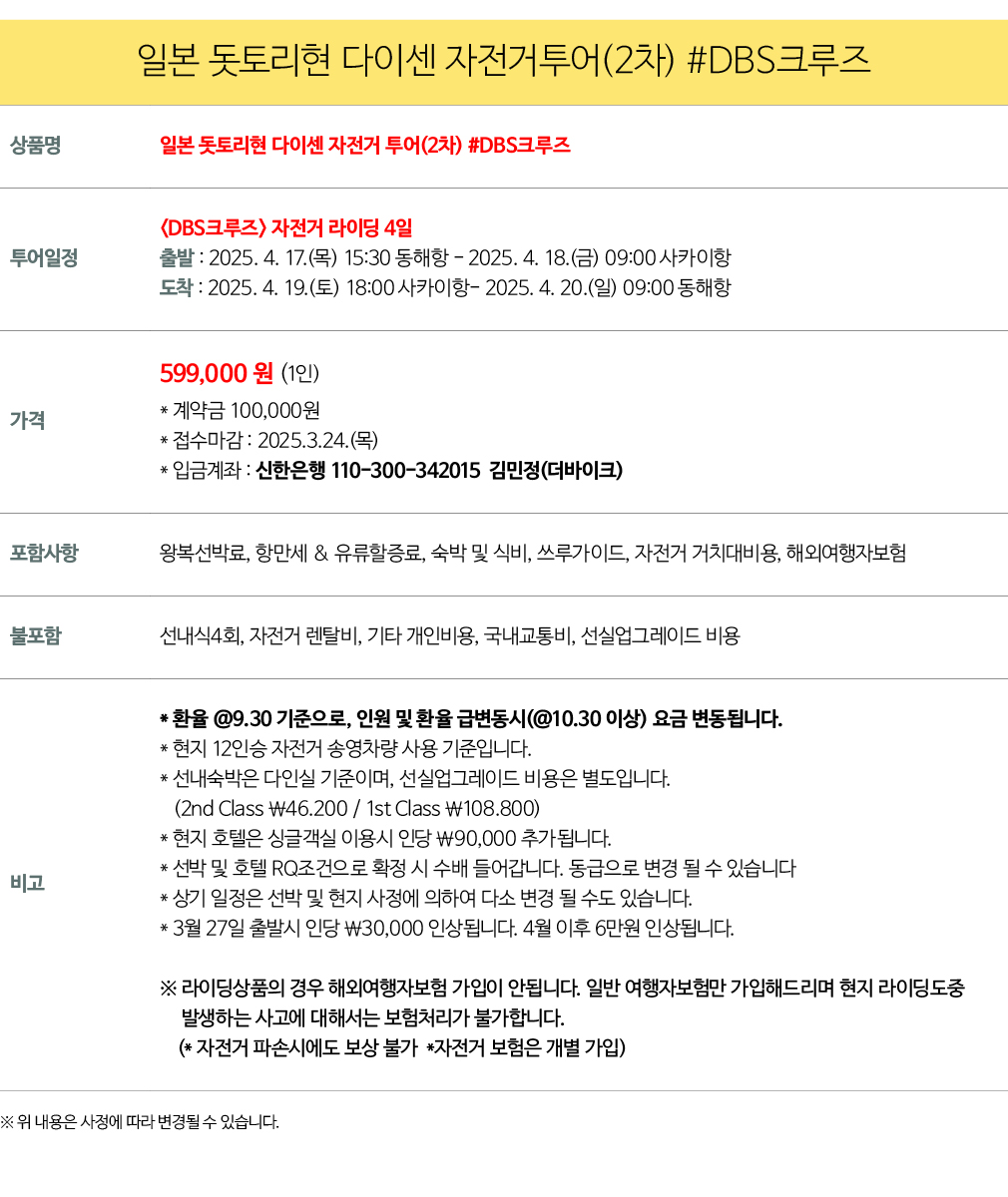 * 여권 및 세부 사항은 홈페이지 접수 후 계약금(10만원) 입금시 개별 안내해 드립니다.