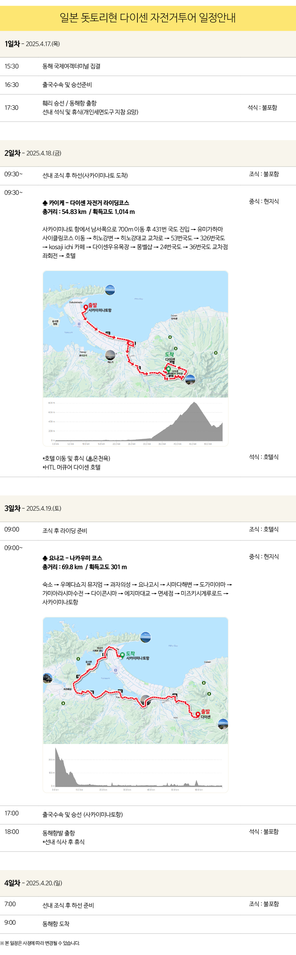 - 자전거 투어중 장비파손 등에 대한 책임은 참가자 본인에게 있으며,대회 주최,주관사에 일체 책임을 물을 수 없습니다.