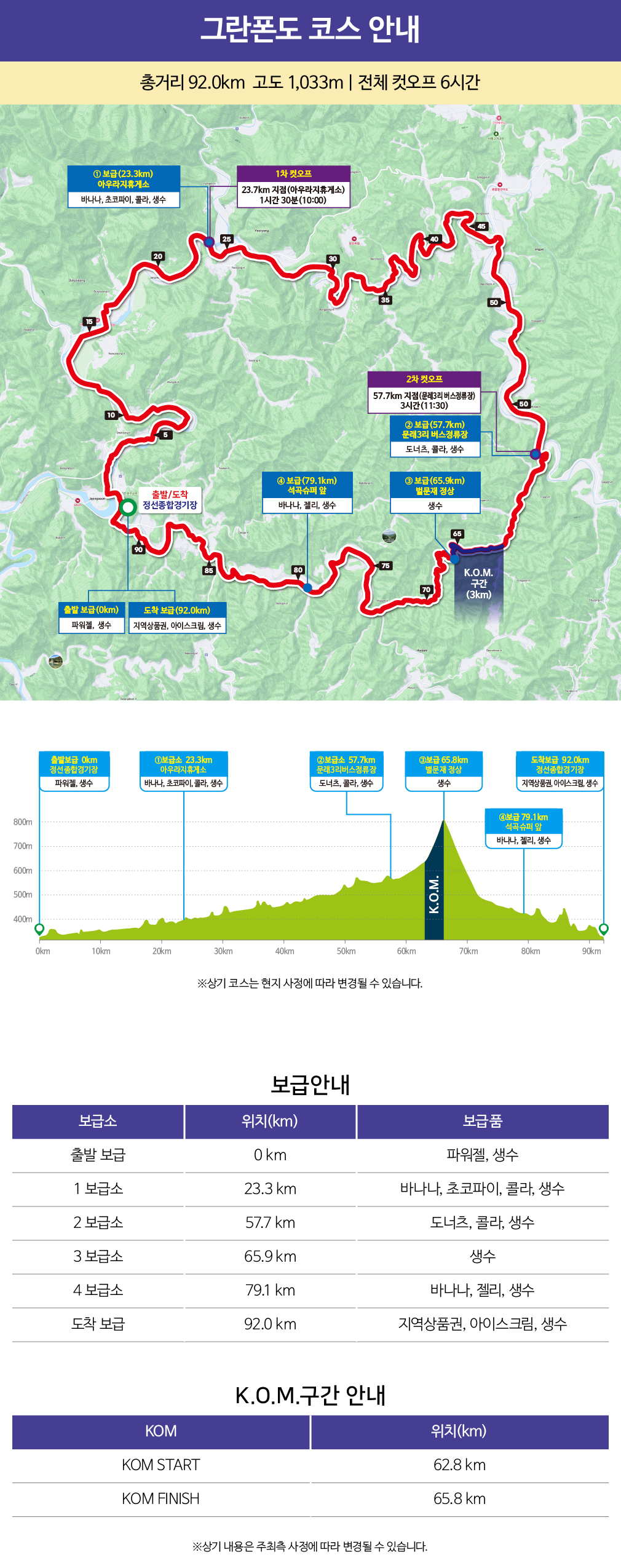 - 2차 컷오프 (57.7km/ 문레3리 버스정류장) : 3시간 (11:30)