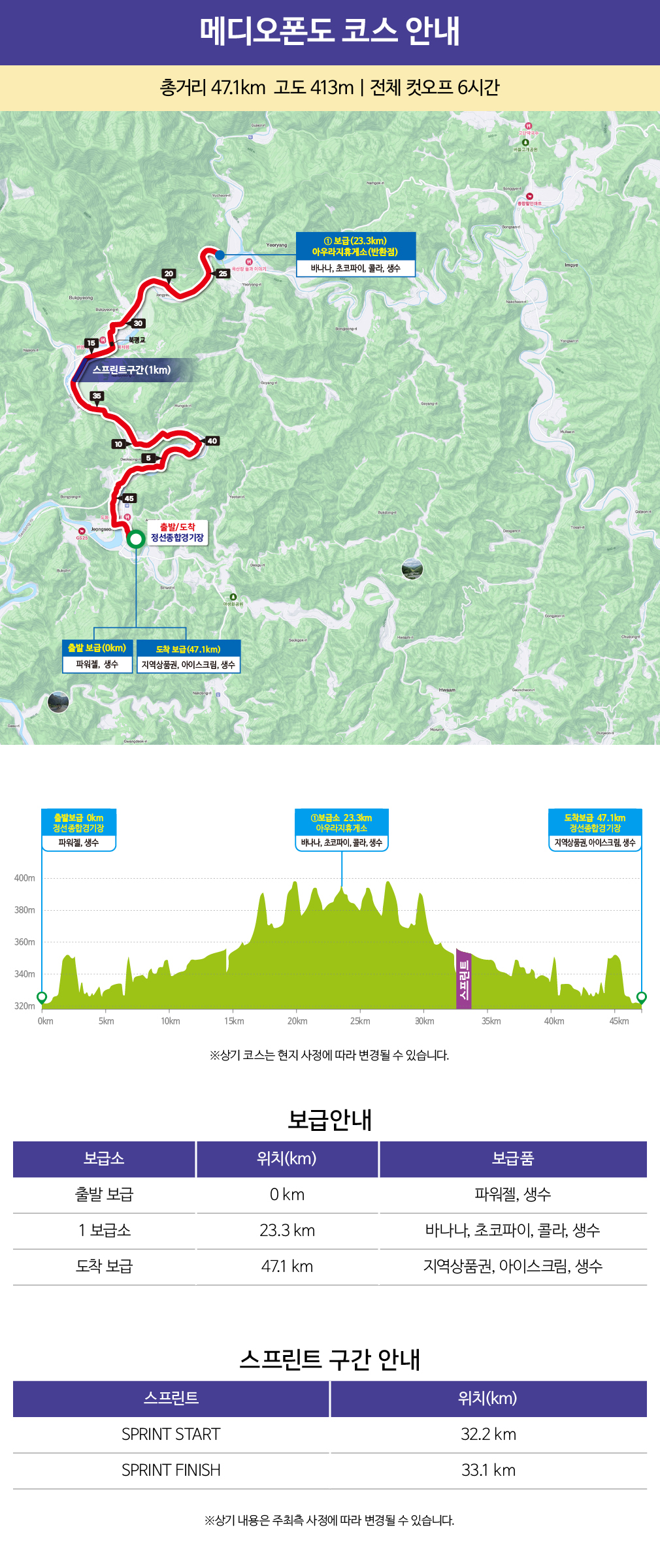 ※물은 선수에게만 지급되며, 참가자는 출발전 개인 휴대용 물통에 완충 하시고 출발하시길 바랍니다.