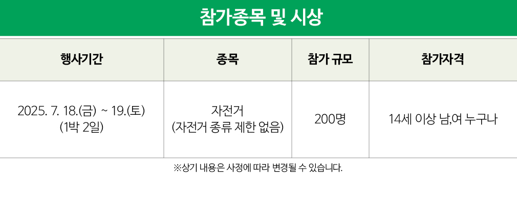 행사 참가자는 반드시 본인이 신청한 코스를 완주할 수 있는건강 상태를 확인해야 합니다.