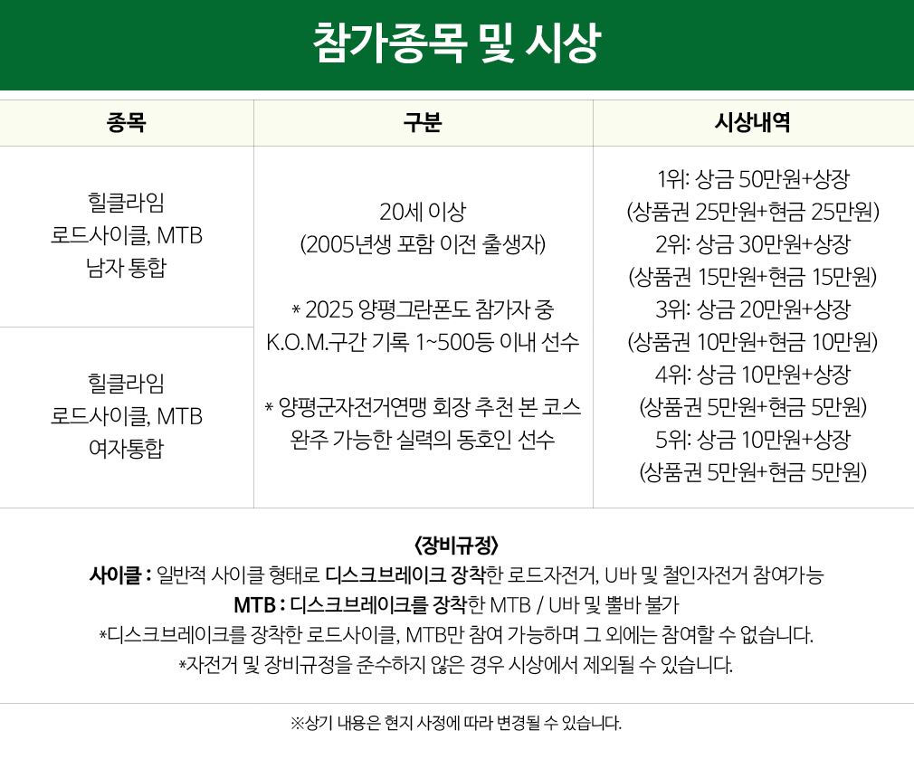 *자전거 및 장비규정을 준수하지 않은 경우 시상에서 제외될 수 있습니다.