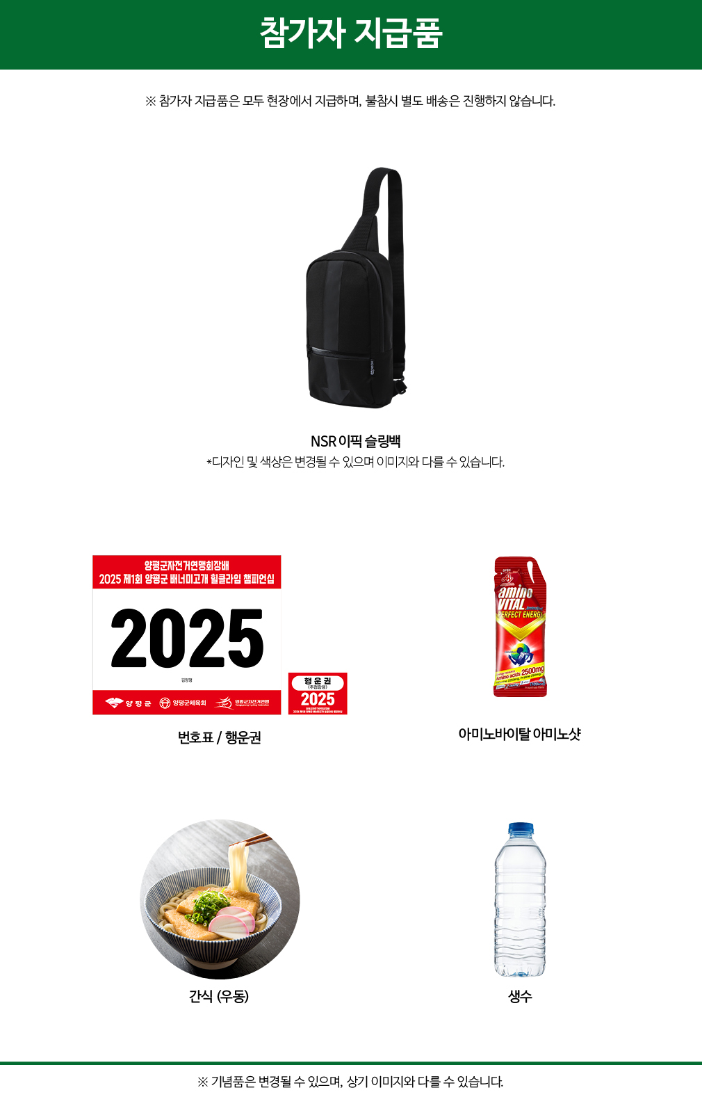 ※ 물은 선수에게만 지급되며, 참가자는 출발전 개인 휴대용 물통에 완충 하시고 출발 하시길 바랍니다.