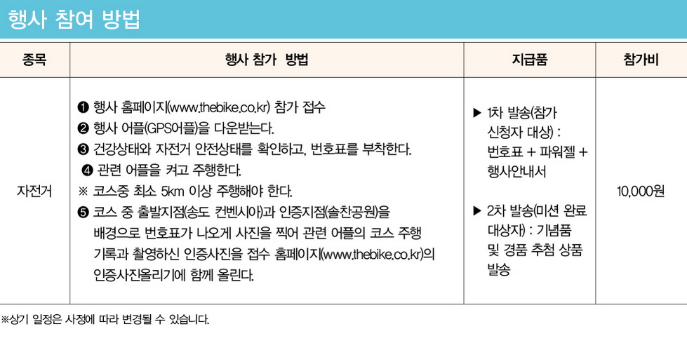 참가비: 1만원(기념품-로디프스포츠고글(13만원 상당), 파워젤, 행운권 등