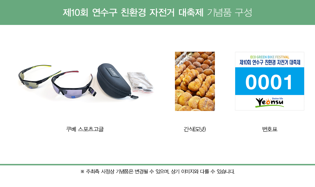 참가자 기념품(쿠베스포츠 고글)은 12만원 이상의 제품으로 색상과 디자인은 랜덤으로 지급됩니다.