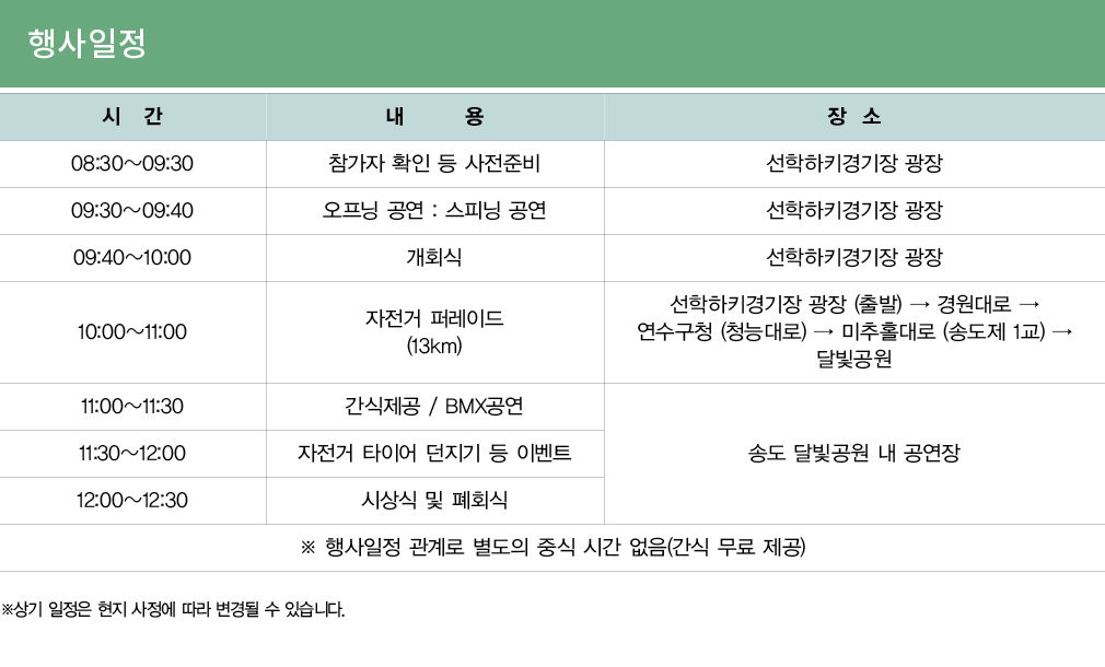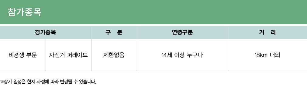 2)행사중 발생되는 자전거 또는 부품 파손으로 인한 손해는 참가자 본인이 모든 비용을 부담해야 합니다.