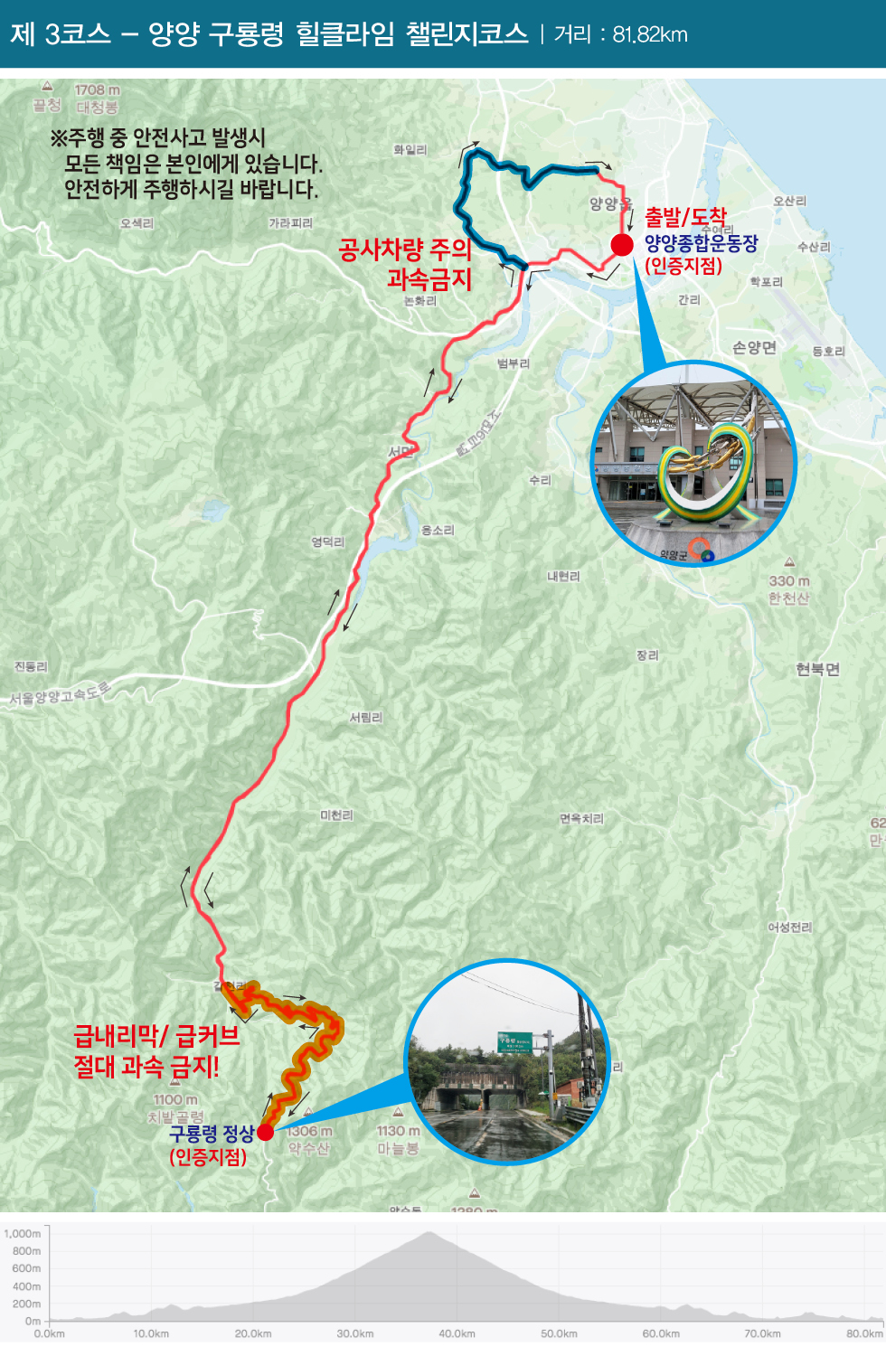[ 2,3코스연결 주행 가능]양양종합운동장출발(인증촬영)-->조침령(인증촬영)-->구룡령(인증촬영)-->양양종합운동장도착
