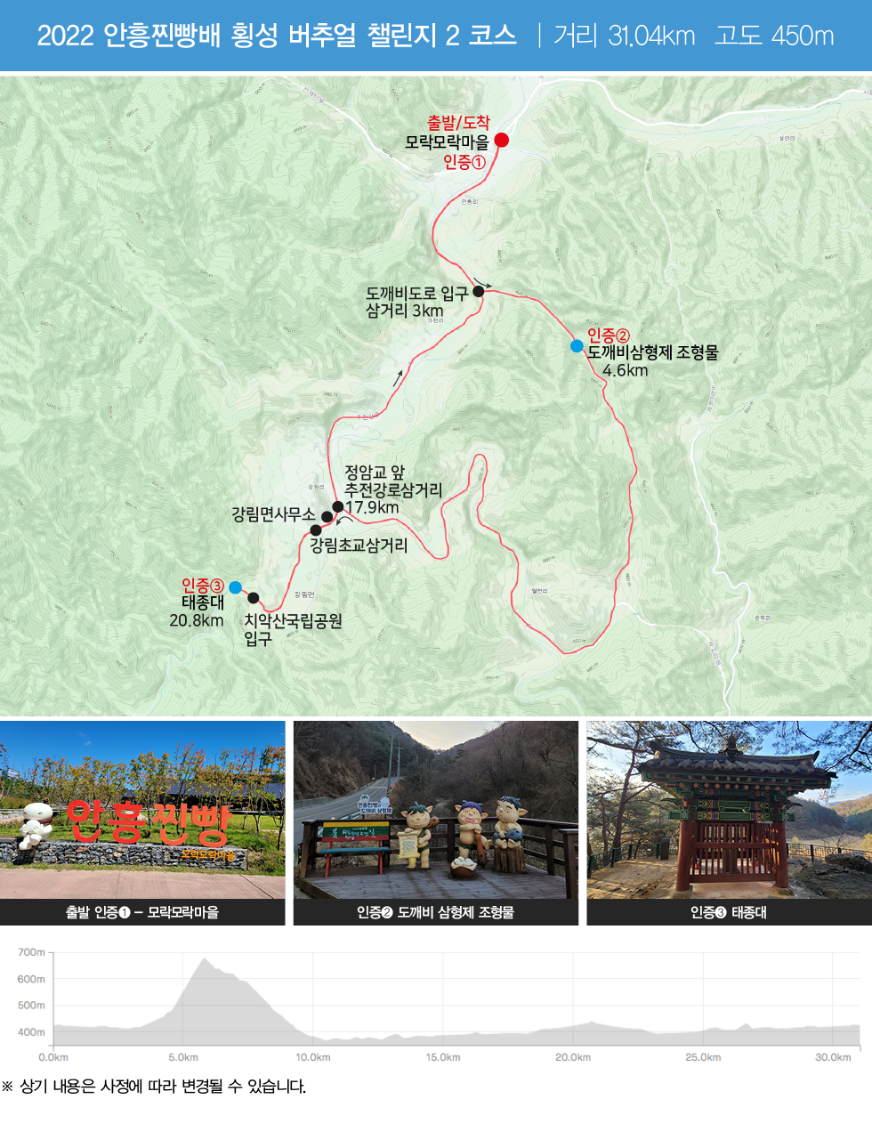 행사 코스는 제안 코스일뿐, 코스 주행 시 위험하다고 판단될 경우 중단하시길 바랍니다.