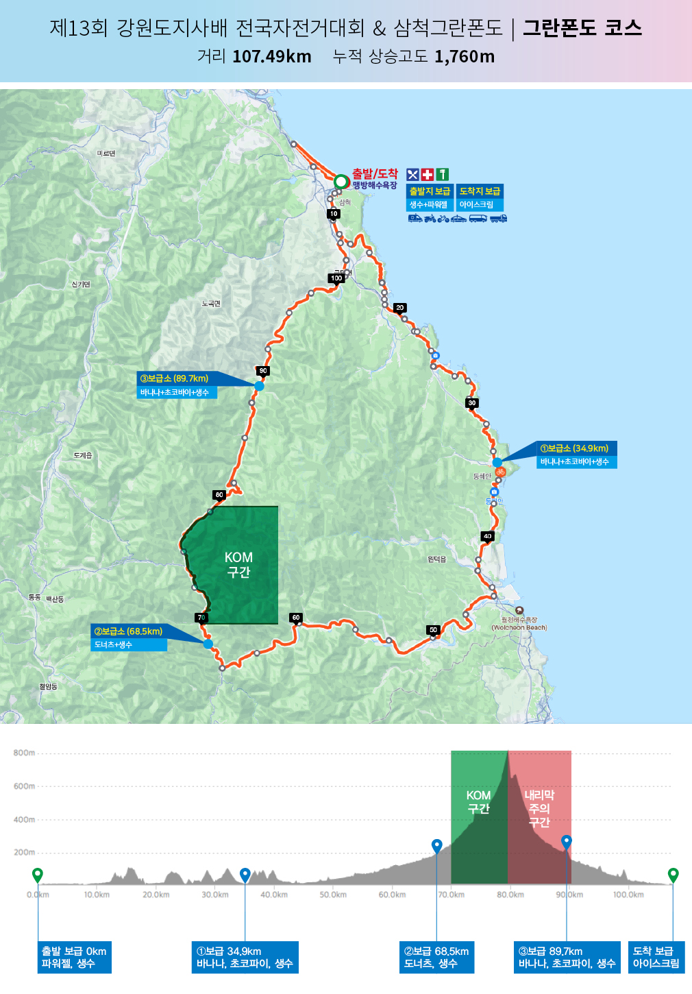 그란폰도는 K.O.M구간 기록만으로 시상하며, 챌린지는 전체구간 기록으로 시상한다.