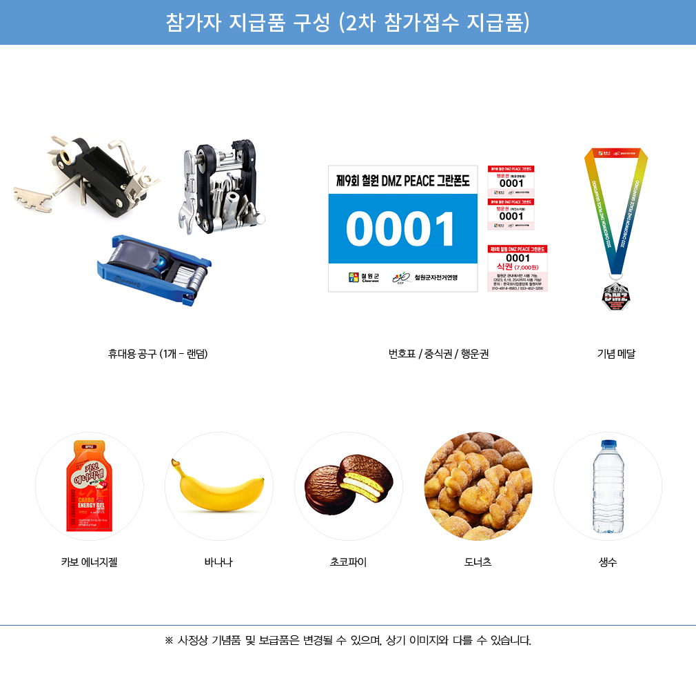 -보급품 수령방법 : 각 보급소에서 배번을 부착한 모든 참가자에게 지급.