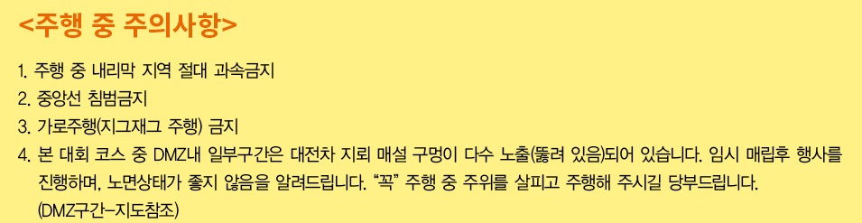 -모든 참가자는 한국의 교통법규를 준수하여야 합니다.